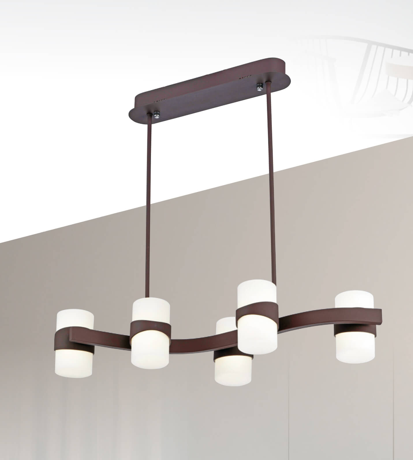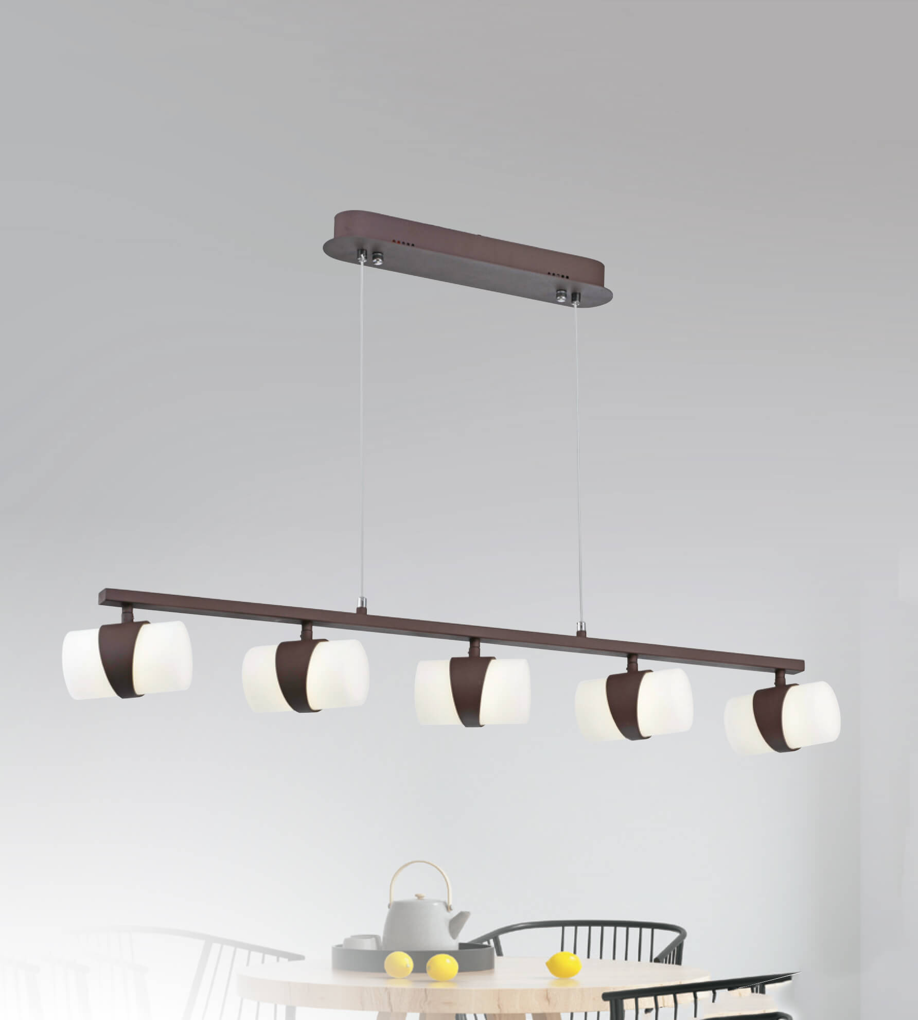 井然有序的燈排成一列,簡約大方的配色, 適合現代簡約居家風格。