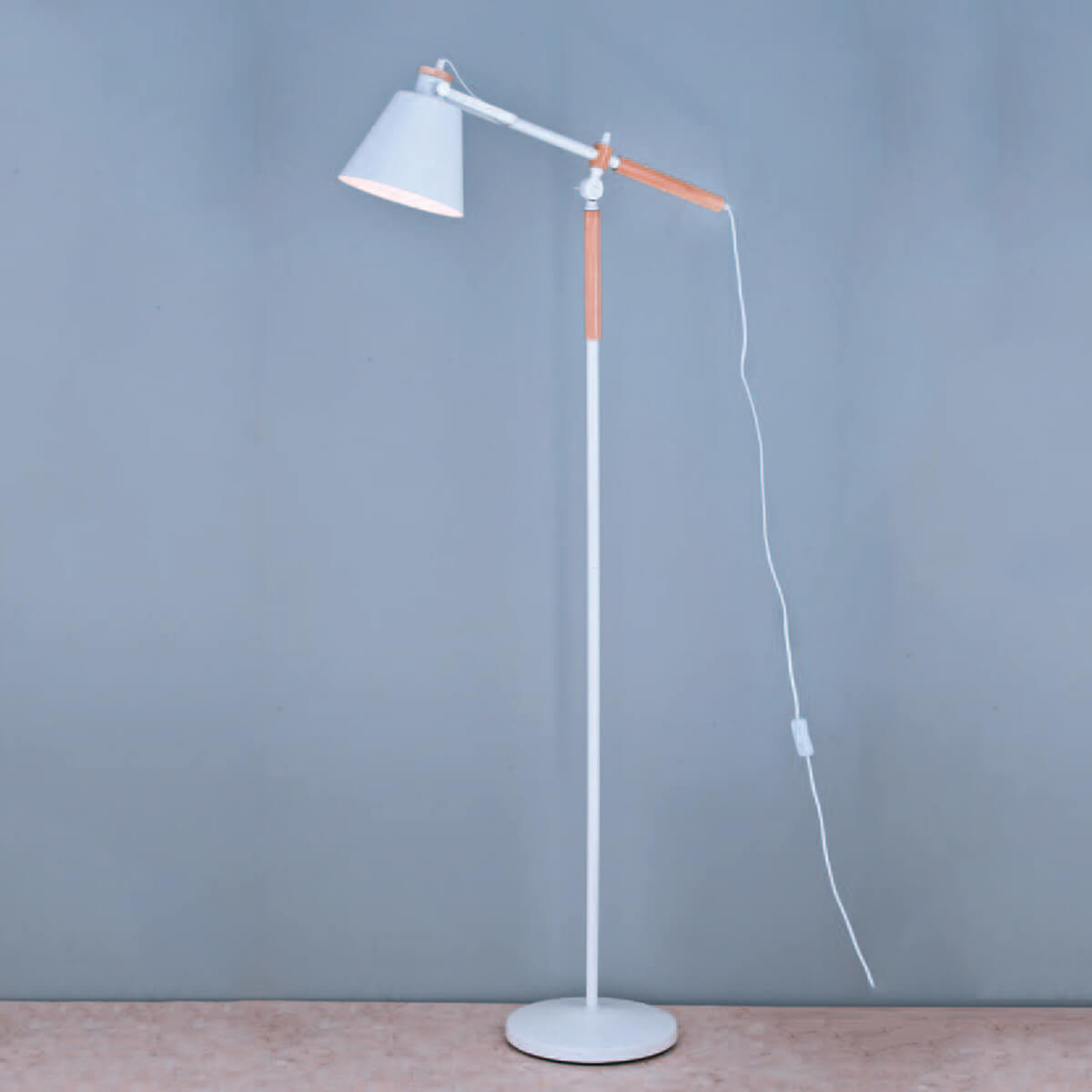 簡單大方的設計,北歐風、工業風居家風格都能輕鬆搭配, 燈罩角度可上下調整,燈柱部分用原木點綴,增添了溫潤感。